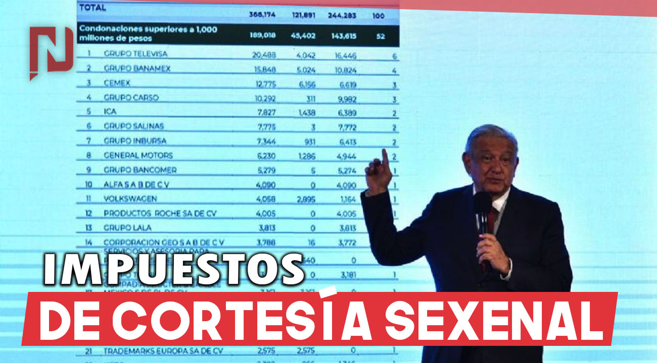 Con documentos en mano, el mandatario dijo que Banamex fue uno de los más favorecidos con la condonación de impuestos: Con Calderón dejó de pagar al fisco 5 mil 24 millones de pesos y con Peña Nieto esa cifra se duplicó al condonarle 10 mil 824 millones de pesos.