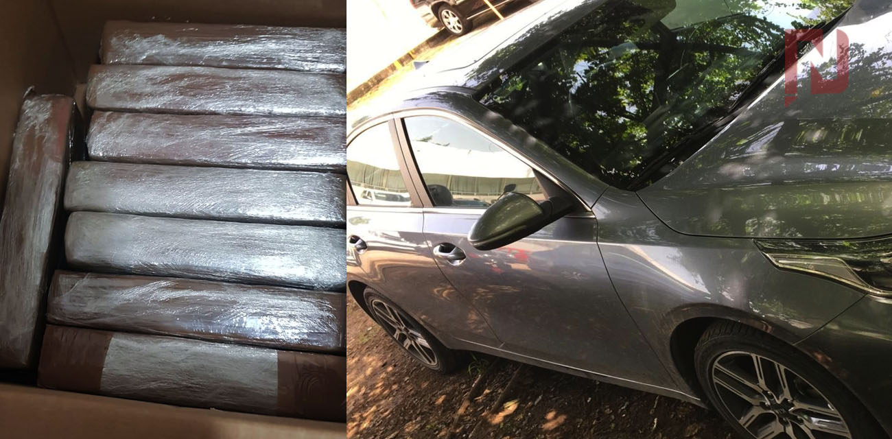 La detención se dio luego de que el hoy imputado emparejó su coche junto con los elementos de la PFM, quienes observaron que introducía unos cuadros en forma de ladrillos, de color negro, en una caja de cartón.