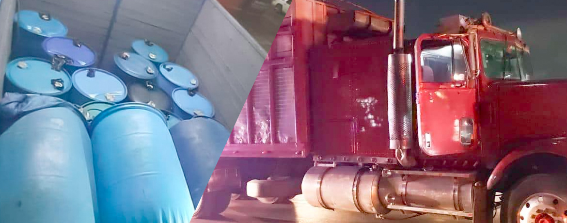 En estas acciones fueron detenidos Marcelino “N” de 22 años y Juan “N” de 35 años, quienes conducían dos vehículos donde eran transportados de forma ilegal 34 tambos que contenían combustible.