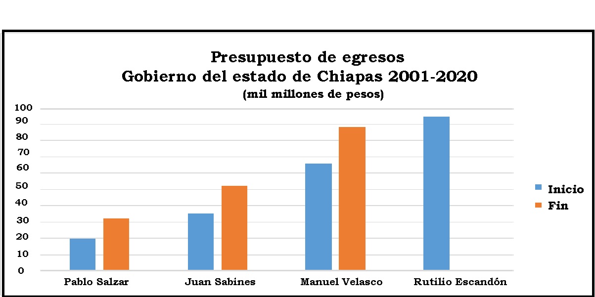 Actualmente, el Congreso del Estado está analizando el proyecto de presupuesto de egresos 2021, por lo que debería tomar en cuenta la urgencia de una nueva política económica de Chiapas, ya que las anteriores han sido un rotundo fracaso. Del 2001 al 2020, el presupuesto de egresos de Chiapas aumentó 4 veces más, al pasar de 20 mil millones a 95mil millones de pesos y su crecimiento económico ha sido regularmente negativo, hoy se encuentra en último lugar de las economías del país y el primero en pobreza.