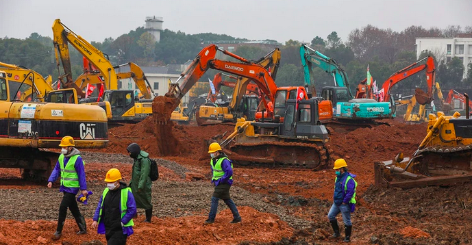 Según imágenes difundidas en la televisión, la maquinaria se ufanaba en preparar el terreno en que se erigirá el establecimiento en Wuhan, el epicentro del brote, una ciudad con 11 millones de habitantes en el centro del país.