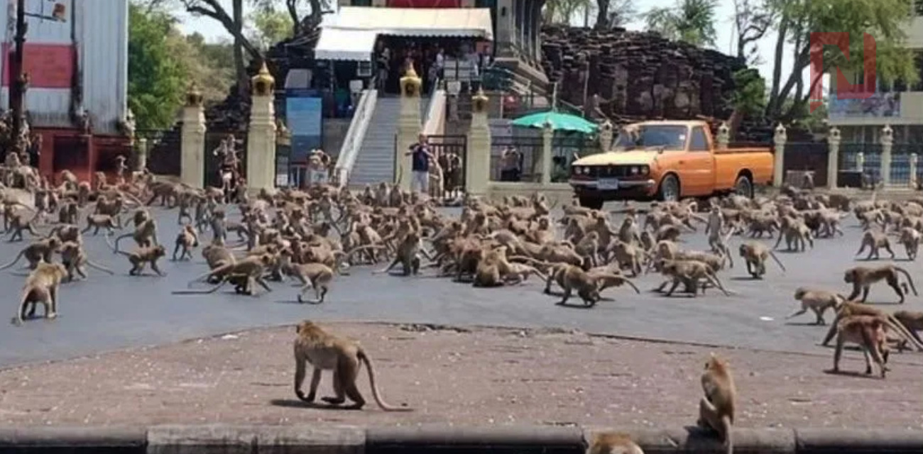 Una manada de monos hambrientos fue captada durante la agresiva disputa por un plátano en las calles de Tailandia. Cientos de ellos se peleaban la fruta y todo a raíz de la gran caída del número de turistas en el país oriental, ya que varios de ellos los alimentan.