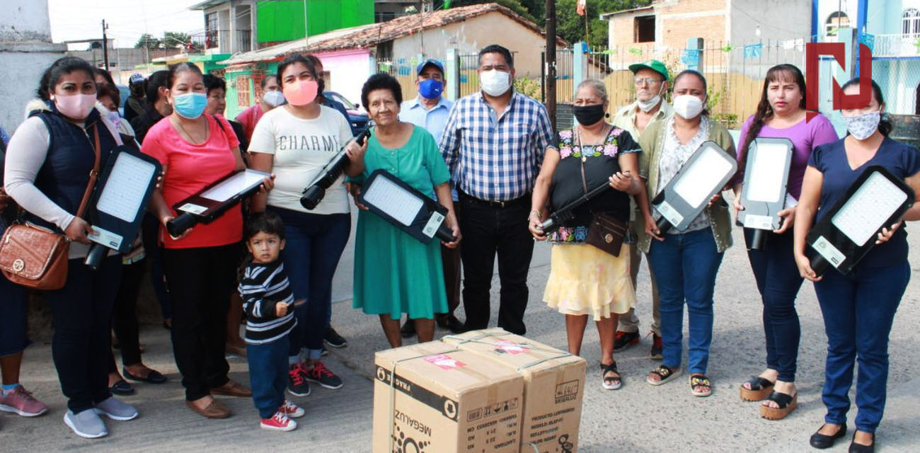 Trabajando a favor de la seguridad, a través de estrategias que reforzarán la seguridad y apoyará a la visibilidad en horas de penumbras, el presidente Pancho Nava entregó luminarias a los barrios de Santa Cecilia, Albores Guillén, 8 de Enero, ranchería San Luis, ampliación Linda Vista y Laureles.