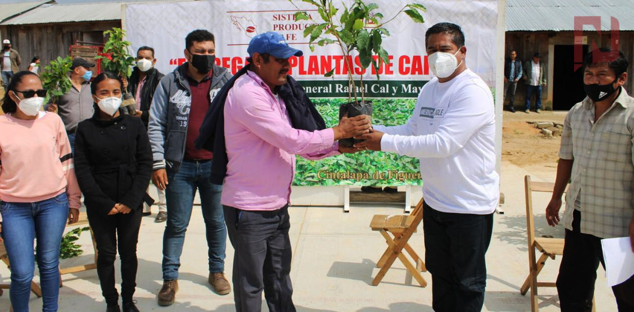 En su gira de trabajo por la comunidad Nuevas Maravillas, el presidente Lic. José Francisco Nava Clemente, realizó la entrega de 33,700 plantas de café a productores Cintalapanecos.