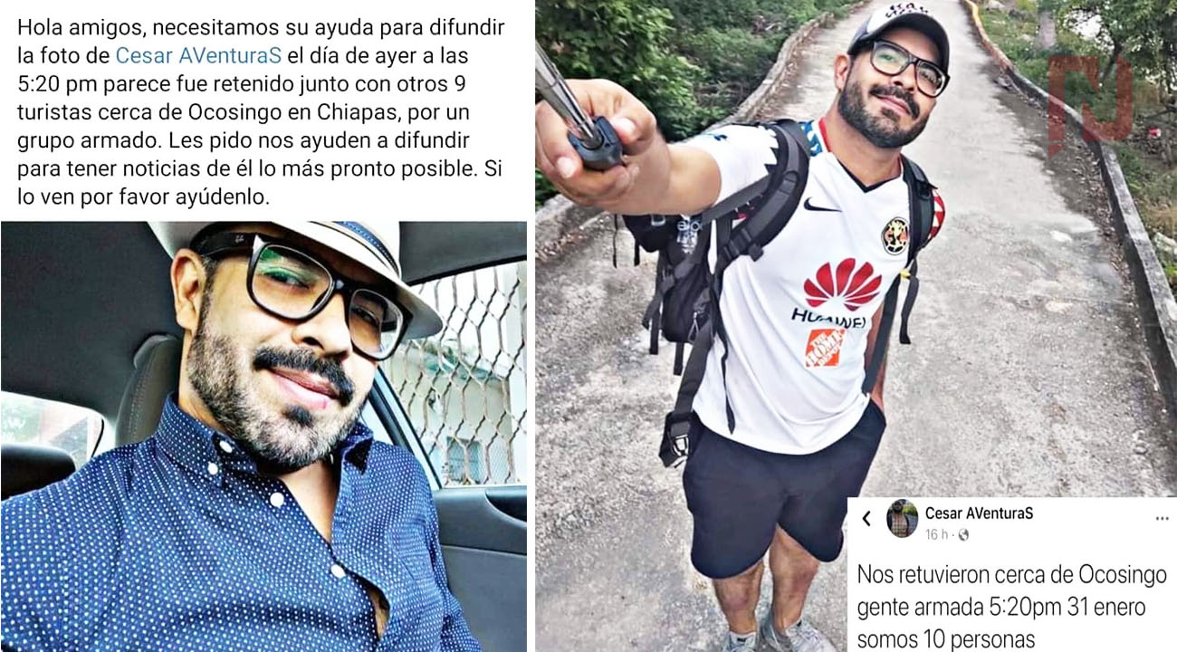 Según la última publicación del «mochilero» identificado como Cesar AVenturaS el grupo de turistas fue retenido a eso de las 5:30 del pasado domingo, sin que se supiera nada más después de suceso.
