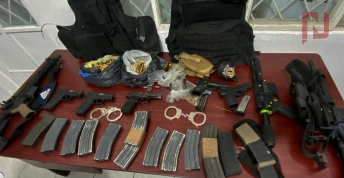 Al momento de solicitarles la documentación que los acreditara como elementos activos, no lo hicieron, por lo que aseguraron ocho armas de fuego de distintos calibres; además, en el vehículo, les encontraron una fornitura de lona color negra, 748 cartuchos, dos juegos de candados de mano con sus respectivas llaves, una piernera color verde y dos paquetes en forma cuadrada confeccionados con cinta canela, que contenían en su interior hierba verde y seca, con las características de la marihuana.